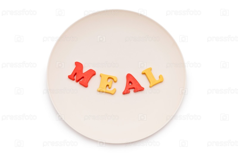 Тарелка с надписью ПИТАНИЕ на белом фоне