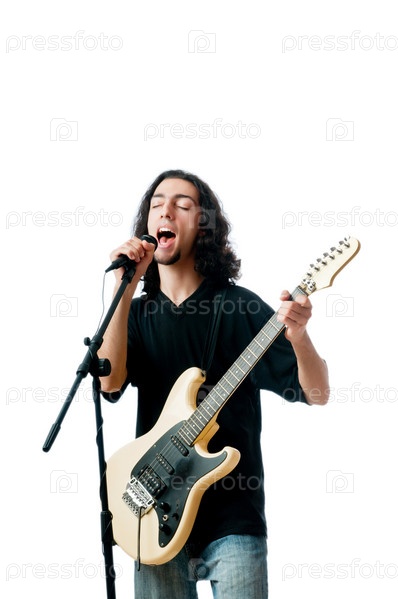 Рок-певец выступает. Изоляция на белом фоне