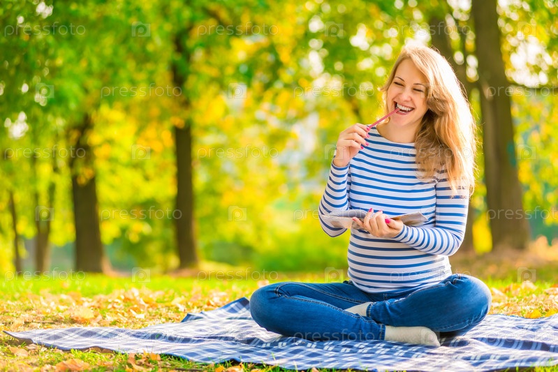 Беременная женщина в парке