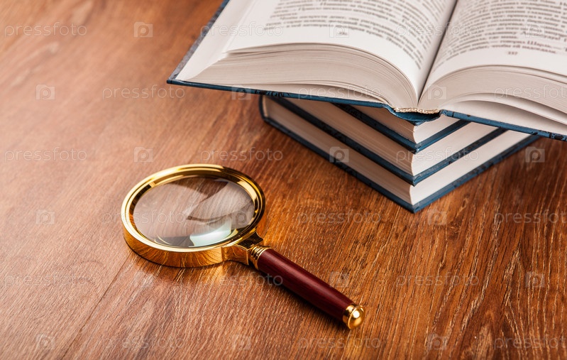 Книги и лупа на столе
