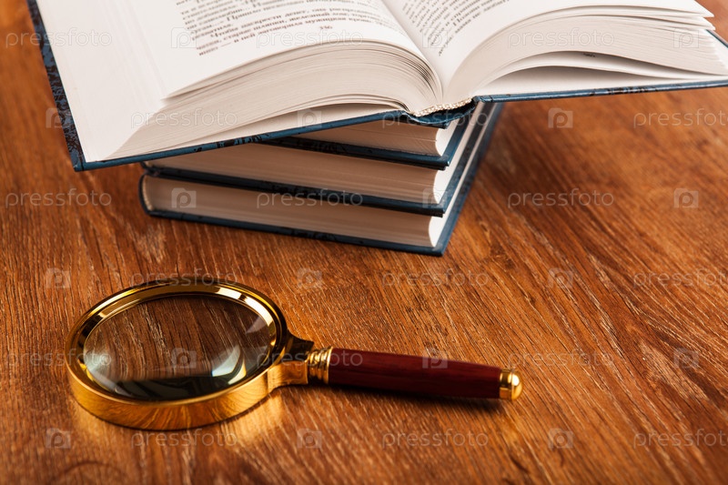 Книги и лупа на столе