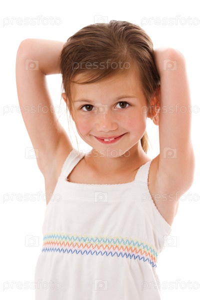 Портрет улыбающейся девочки, изолированной на белом