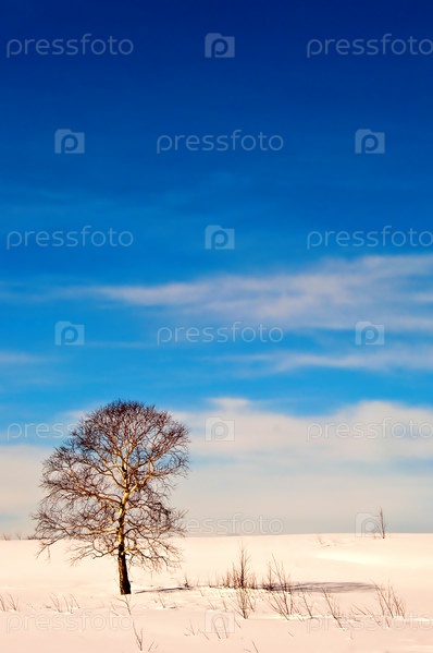 Зимний пейзаж с одиноким деревом