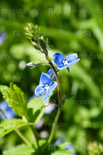 Синий цветок в траве, летний день