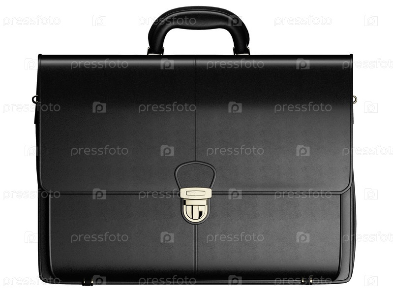 Черный кожаный портфель на белом фоне