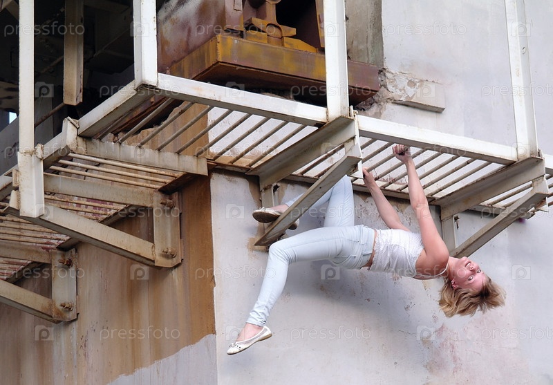 Девушка выполняет акробатические упражнения на опоре моста