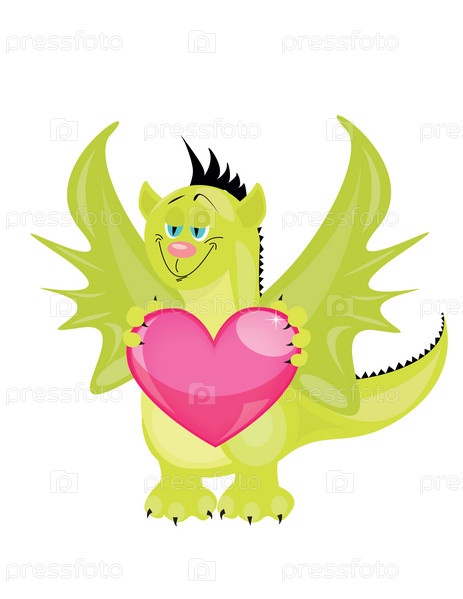 Дракон с красным сердцем в лапах, юмористическая иллюстрация
