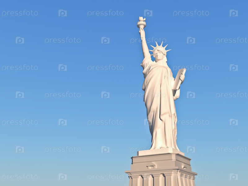 Статуя свободы в полный рост на фоне голубого неба