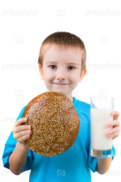 Мальчик с хлебом и молоком