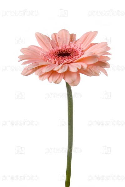 Розовая гербера на белом фоне
