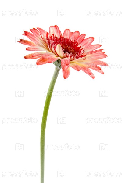 Розовая гербера на белом фоне