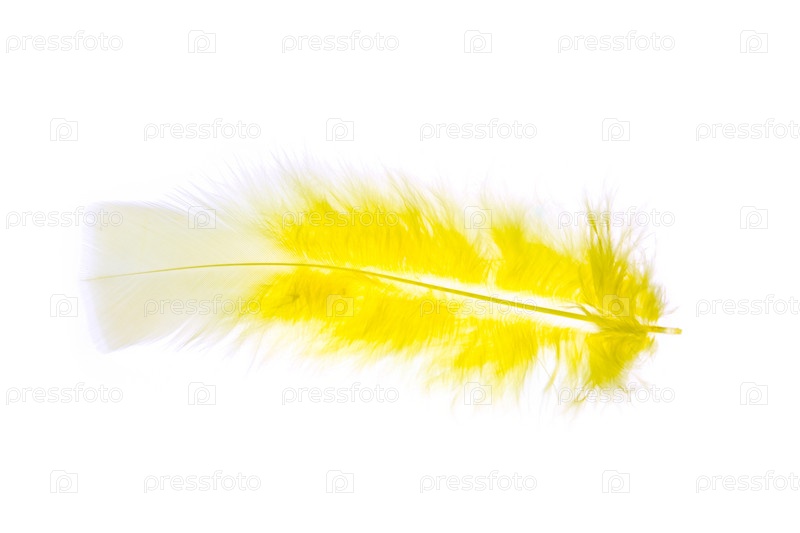 Желтое перо на белом фоне