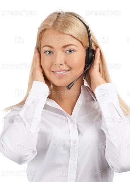 Оператор службы поддержки на белом фоне