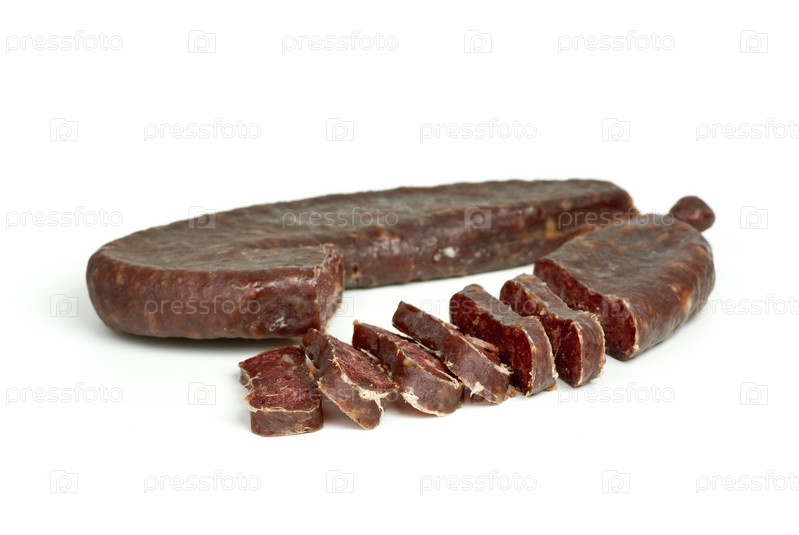 Нарезанный суджук на белом фоне