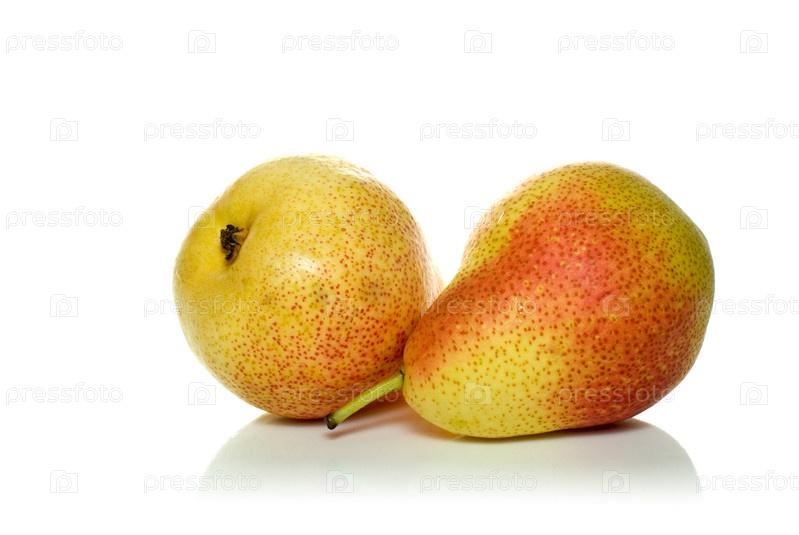 Две краснобокие груши на белом фоне
