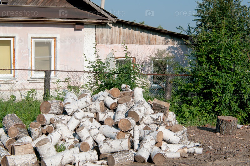 Березовые дрова у деревенского дома