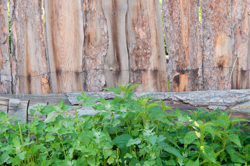 Трава у деревенского забора