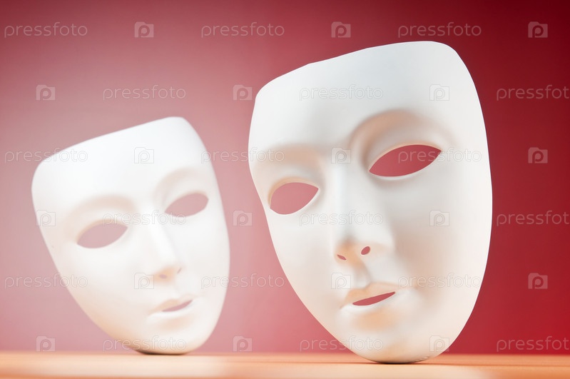 Две белые маски на красном фоне