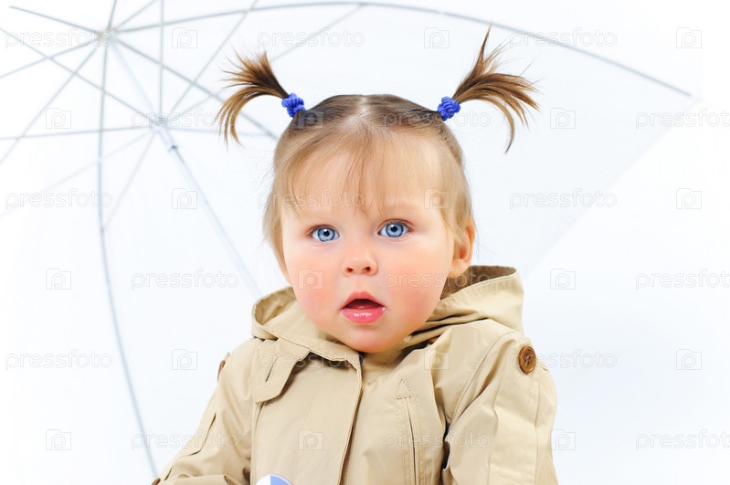 Маленькая девочка с зонтиком на белом фоне