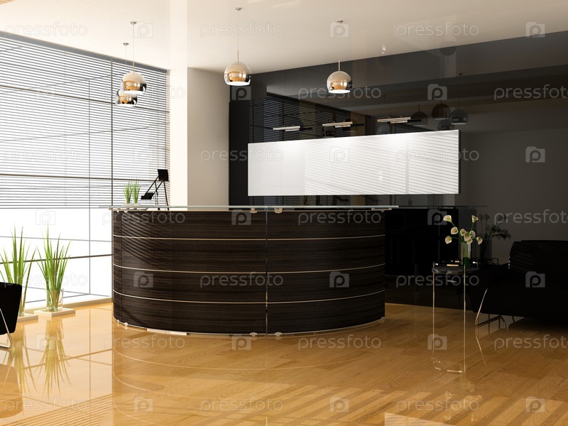 Красный прием в современном отеле 3d image