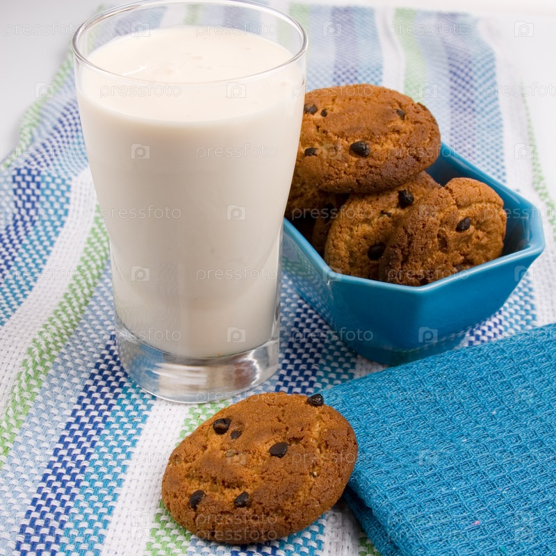 Ряженка с овсяным печеньем на скатерти
