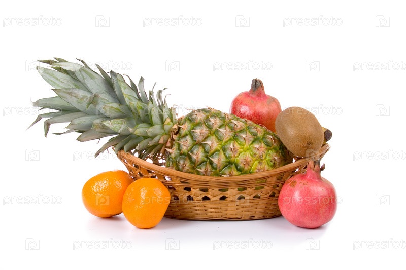 Свежие фрукты в плетеной корзине