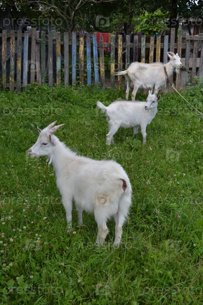 Коза с козлятами на лужайке