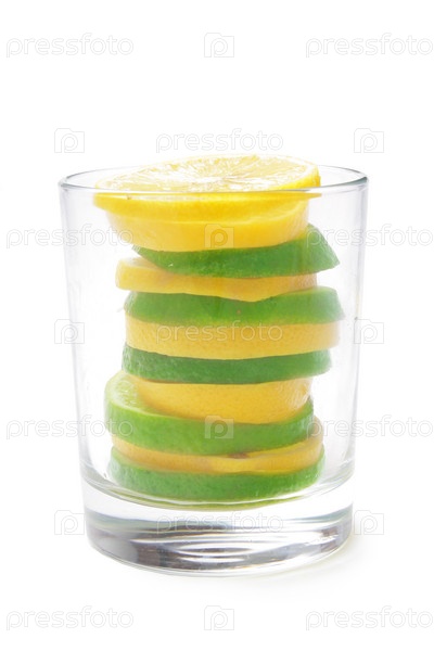 Ломтики лайма и лимона в стакане