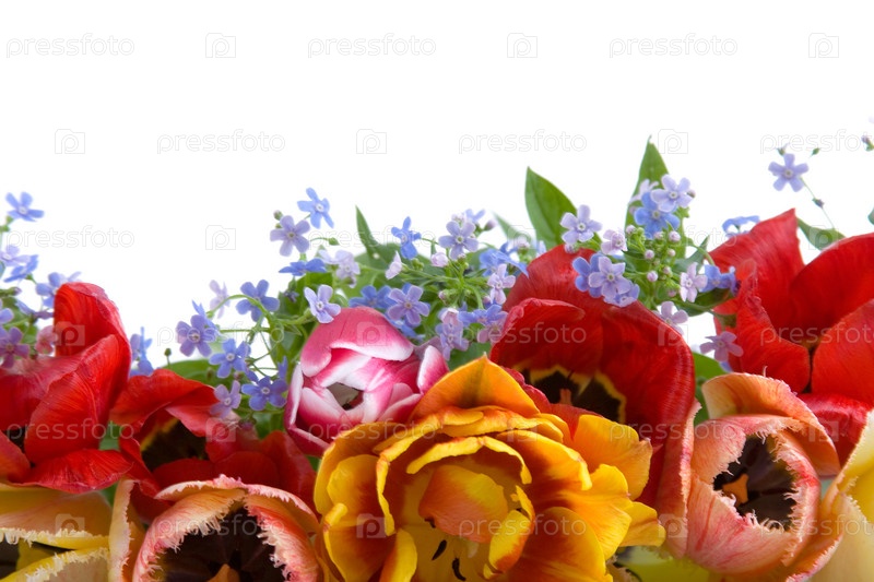 Букет весенних цветов на белом фоне