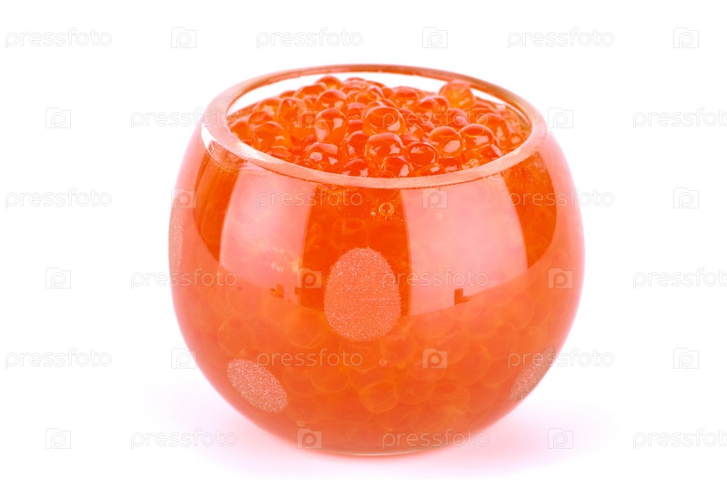 Вазочка с красной икрой на белом фоне