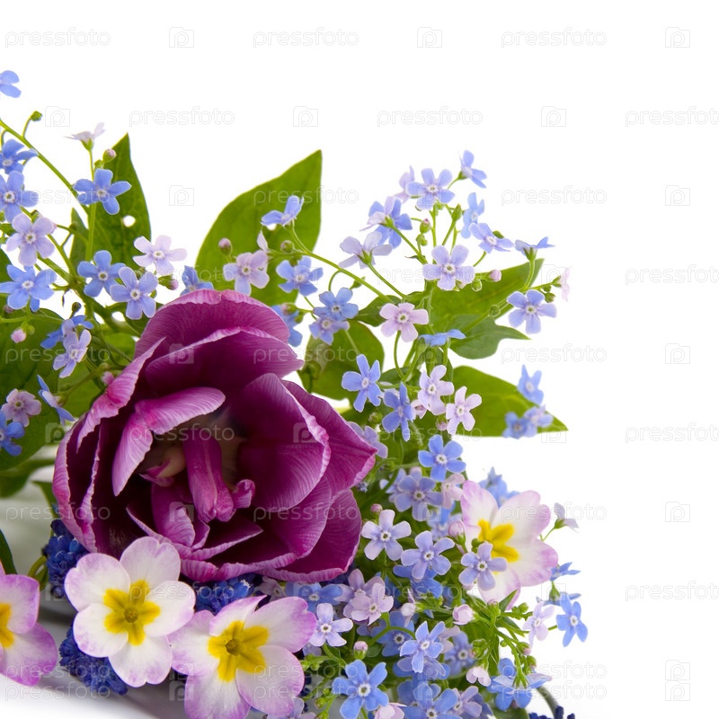 Букет весенних цветов на белом фоне