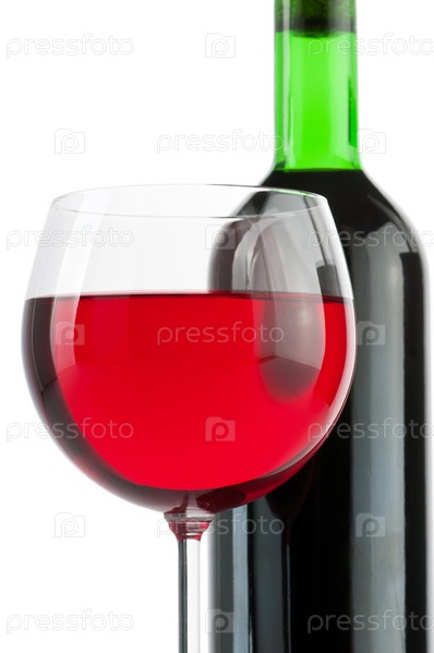 Бокал и бутылка красного вина
