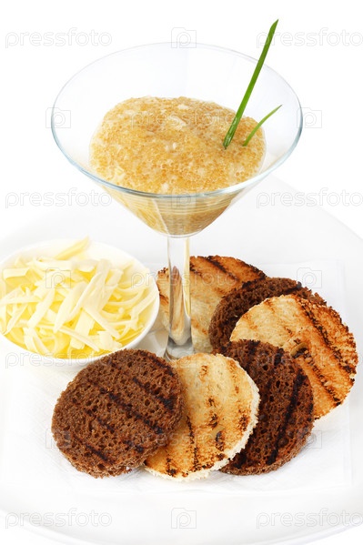 Икра, масло и поджаренные ломтики хлеба изолированы на белом