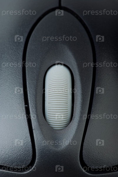 Ролик черной компьютерной мышки крупным планом