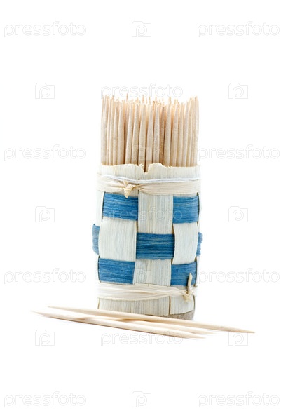Связка зубочисток упакованных в клетчатую на белом фоне