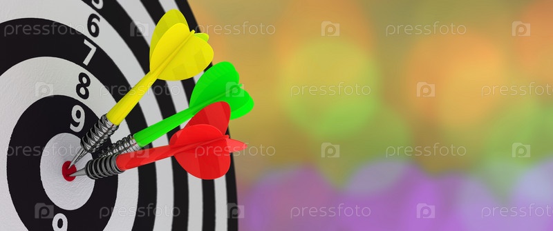 Три дротика в центре мишени на размытом фоне