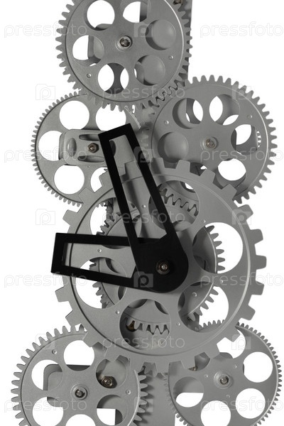 Металлический часовой механизм, изолированный на белом