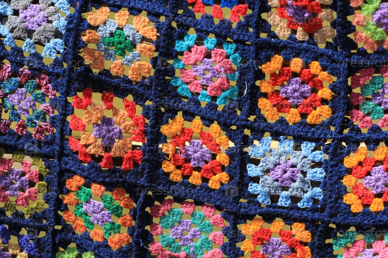 Вязаная яркая шаль, фрагмент