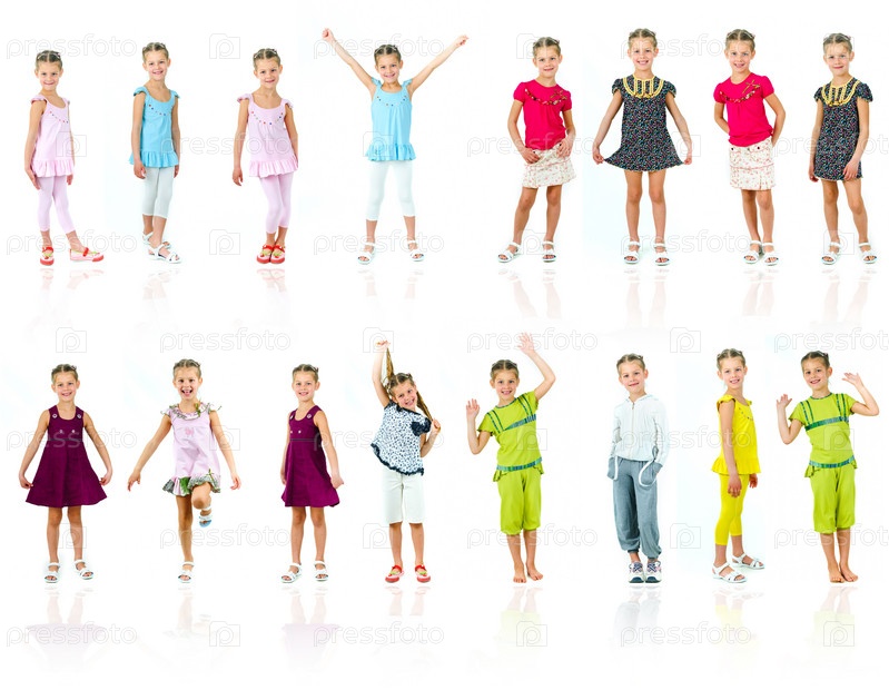Очаровательная девочка в разной одежде, коллаж