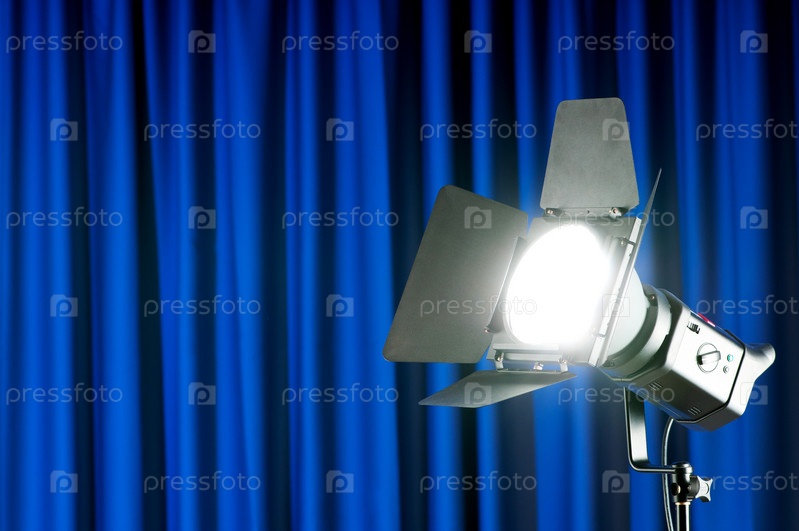 Прожектор на фоне синего занавеса