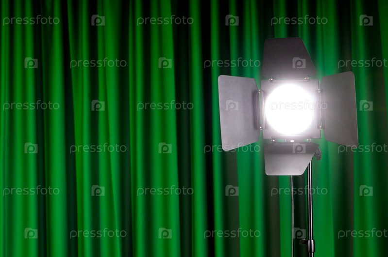 Прожектор на фоне зеленого занавеса