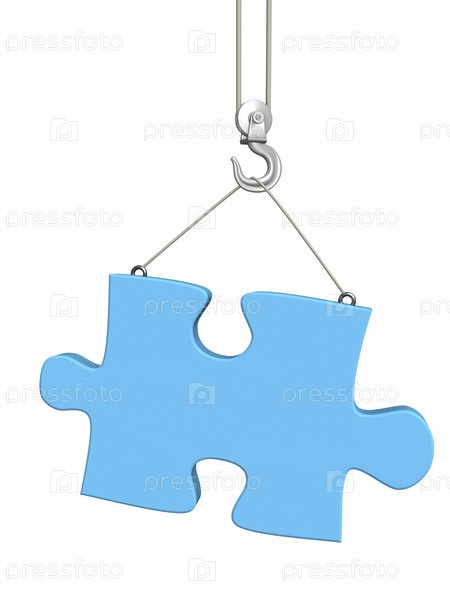 Кусок головоломки, висящий на крюке подъемного крана