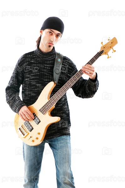 Гитарист на белом фоне