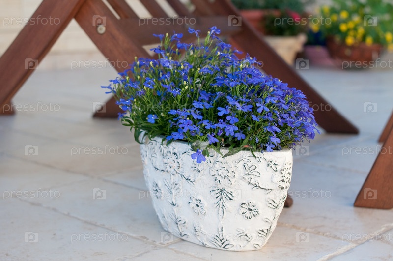 Декоративное кашпо с голубыми цветами