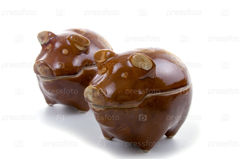 Керамические горшочки в форме свинок на белом фоне
