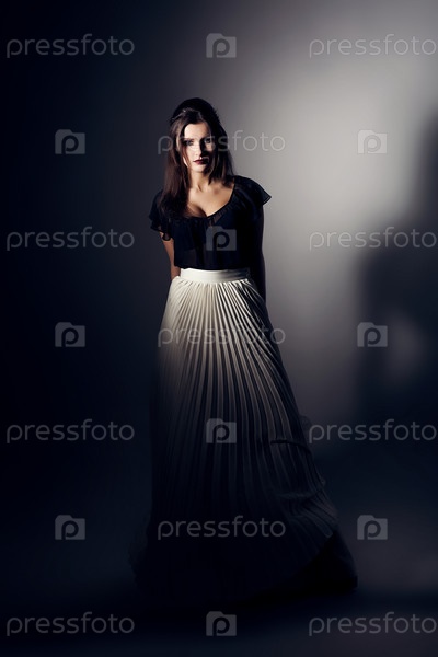 Симпатичная женщина в белой юбке и черном топе
