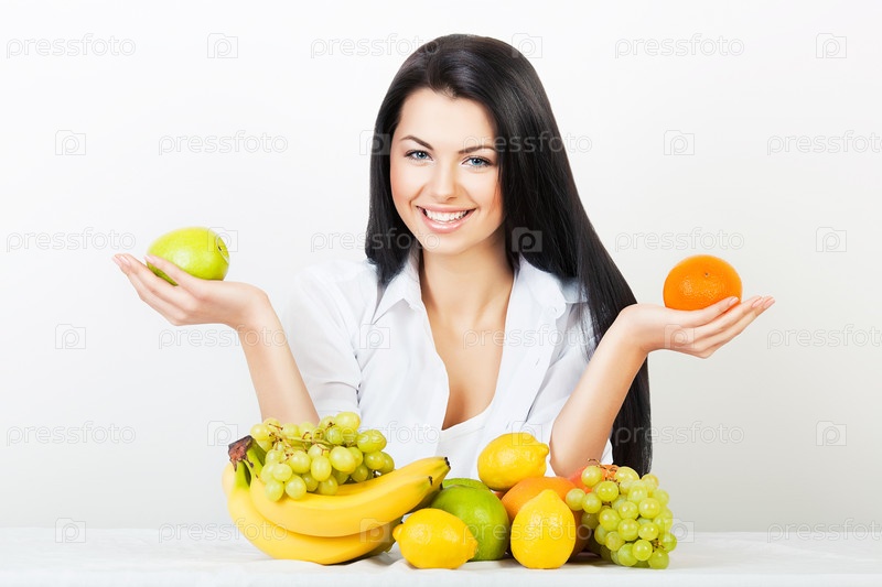 Счастливая девушка с полезной едой