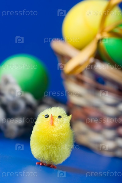 Пасхальный натюрморт на синем фоне
