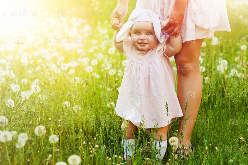 Счастливый ребенок с матерью в поле