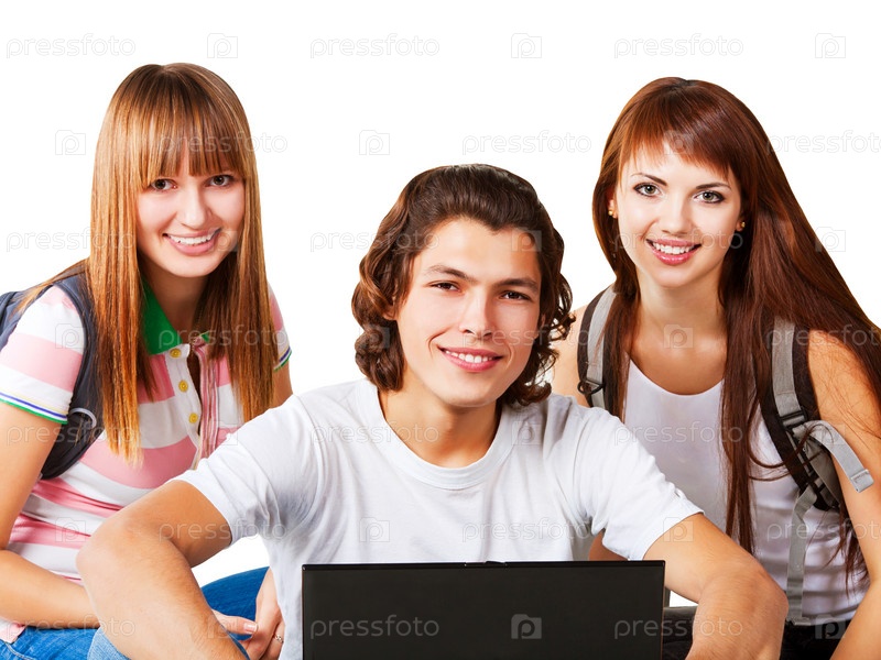 Студенты на белом фоне
